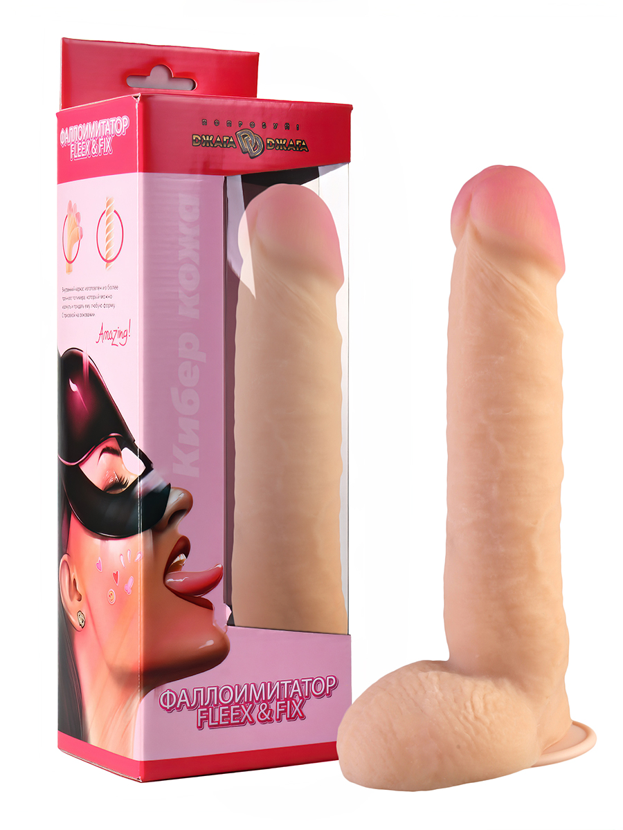 Фаллоимитатор серии "Flex Fix Sistem" имеет многослойную структуру. Наружная оболочка сделана из мягкого сверхреалистичного бархатистого материала киберкожа-невероятно приятного на ощупь. Внутренний каркас изготовлен из более прочного полимера, который можно изогнуть и придать ему любую форму. С присоской на основании. Фаллоимитатор достаточно крупного размера с выраженными венками и крупной, прорисованной головкой и выраженной мошонкой способен вскружить голову его обладателю. Великолепный фаллоимитатор с объемной головкой обеспечит максимальное наслаждение во время любовных забав.